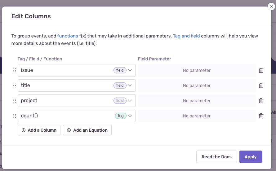 Once the changes are applied, sort the "Results" table by the "COUNT()" column to display your busiest issues: